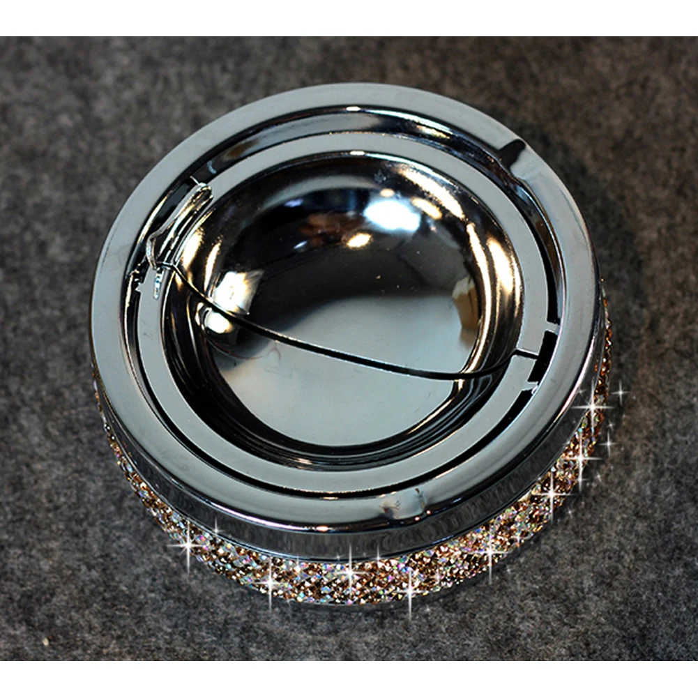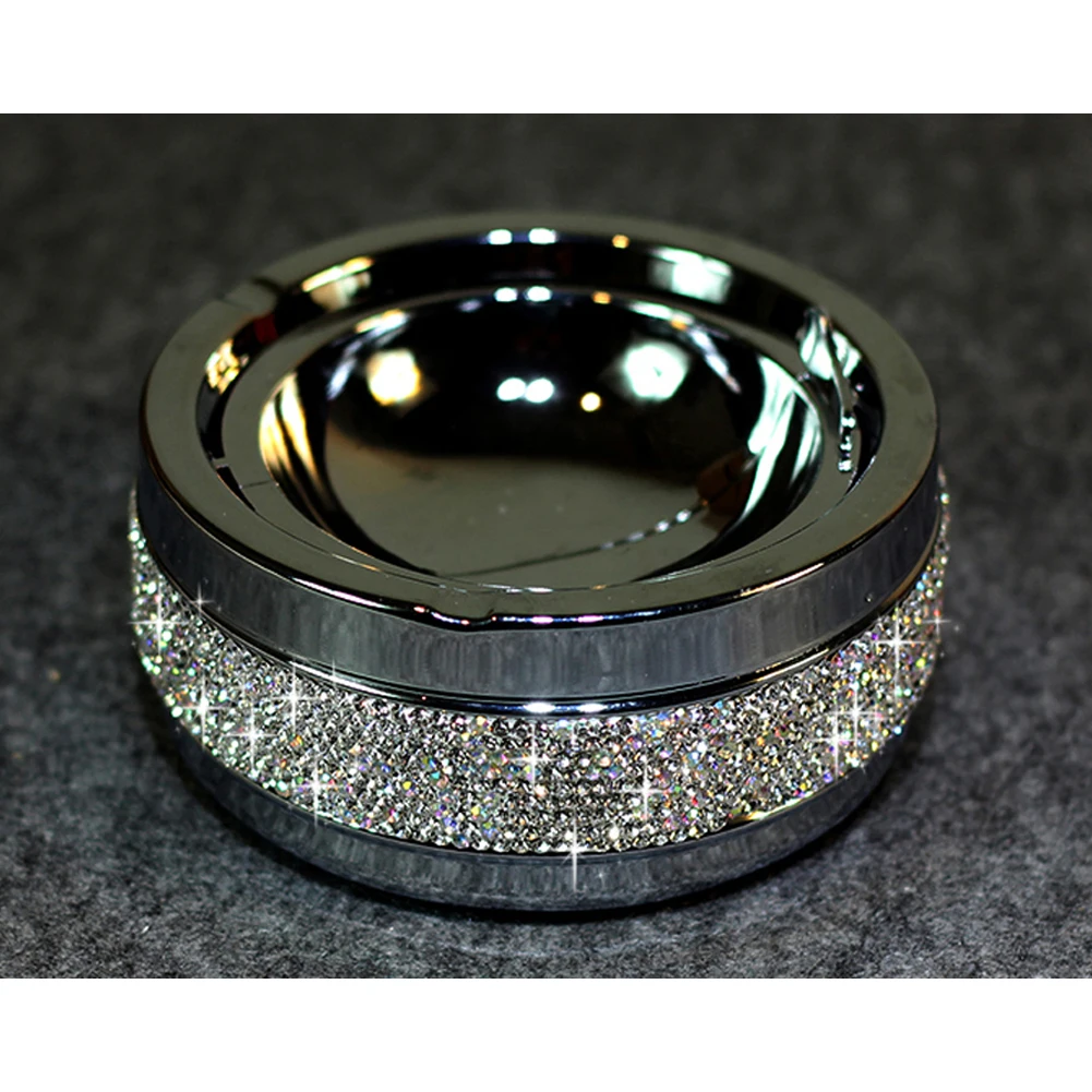 Luxury Bling Stainless Steel Portable Waste Bin Rhinestone Ashtray Cigarette Case for Car Home Hote